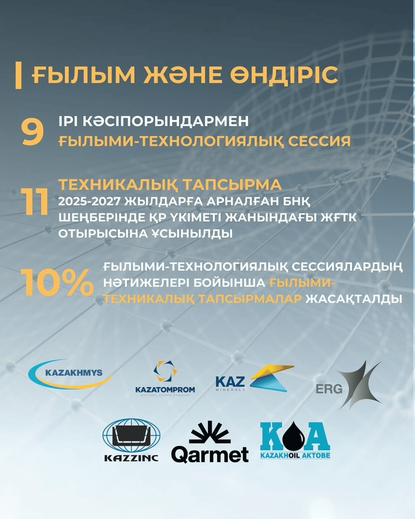Жалпы, елде ғылыми зерттеулермен 425 ұйым айналысады, бұл 2022 жылмен салыстырғанда 11-ге көп. Ғылыми қызметкерлер саны 25,4 мың адамға жетті, оның 46%-ы жас ғалымдар.