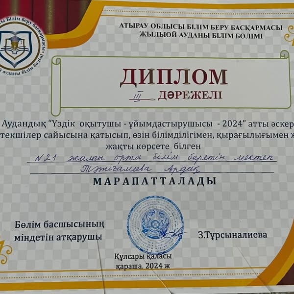 Үздік оқытушы - ұйымдастырушысы - 2024